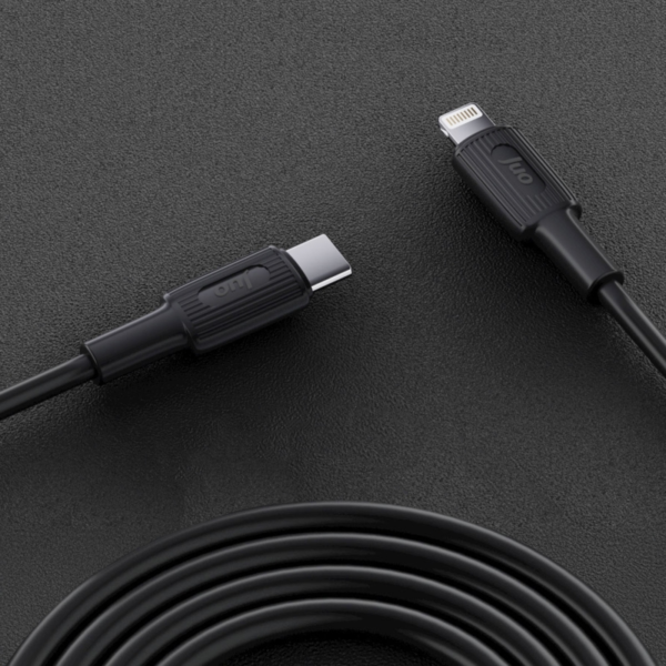 Juo 27W USB Type-C to Lightning iPhone iPad Silikon Hızlı Şarj ve Data Kablosu Siyah 2 Metre