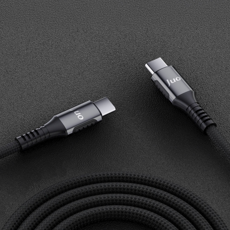 1 x Juo 60W USB Type-C to Type-C Örgülü PD Hızlı Şarj ve Data Kablosu 1 Metre Siyah