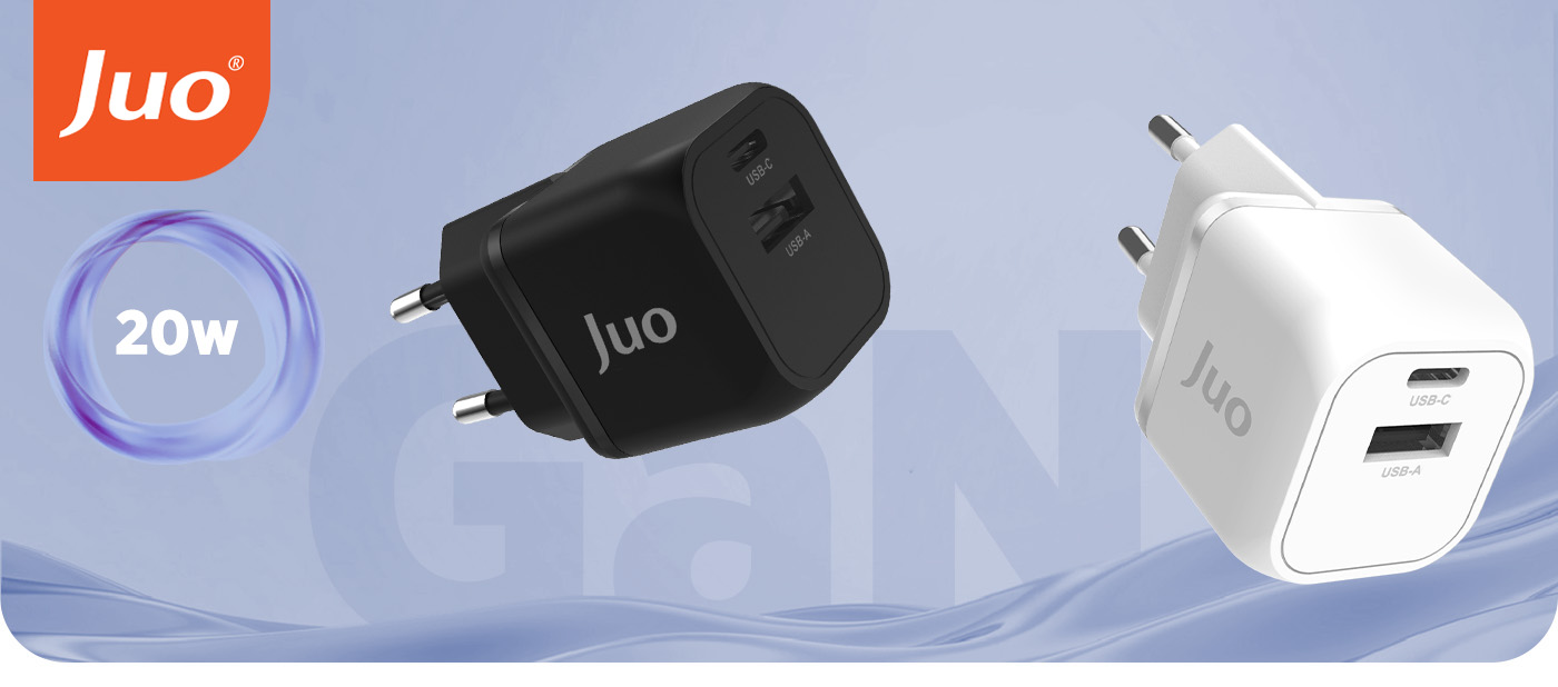 GaN (Galyum nitrid), şarj aletleri ve güç adaptörlerinde giderek daha fazla kullanılan yenilikçi bir yarıiletken kristal malzemedir. Geleneksel silikon bazlı şarj cihazlarına göre yüksek performans sergilemektedir. Mükemmel iletkenliğinin yanında yüksek sıcaklıklara karşı dirençlidir. GaN teknolojisine sahip şarj cihazlarının yüksek frekansları nedeniyle, daha az alan gerektirir. GaN teknolojisinden güç alan Juo 20W G201C1A şarj adaptörü silikon bazlı şarj cihazlarına kıyasla minimal yapıda daha yüksek Watt değerlerine sahiptir.