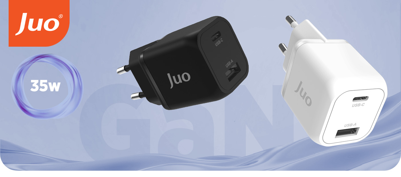 GaN (Galyum nitrid), şarj aletleri ve güç adaptörlerinde giderek daha fazla kullanılan yenilikçi bir yarı iletken kristal malzemedir. Geleneksel silikon bazlı şarj cihazlarına göre yüksek performans sergilemektedir. Mükemmel iletkenliğinin yanında yüksek sıcaklıklara karşı dirençlidir. GaN teknolojisine sahip şarj cihazlarının yüksek frekansları nedeniyle, daha az alan gerektirir. Gan teknolojisinden güç alan Juo 35W G351C1A şarj adaptörü silikon bazlı şarj cihazlarına kıyasla minimal yapıda daha yüksek Watt değerlerine sahiptir.
